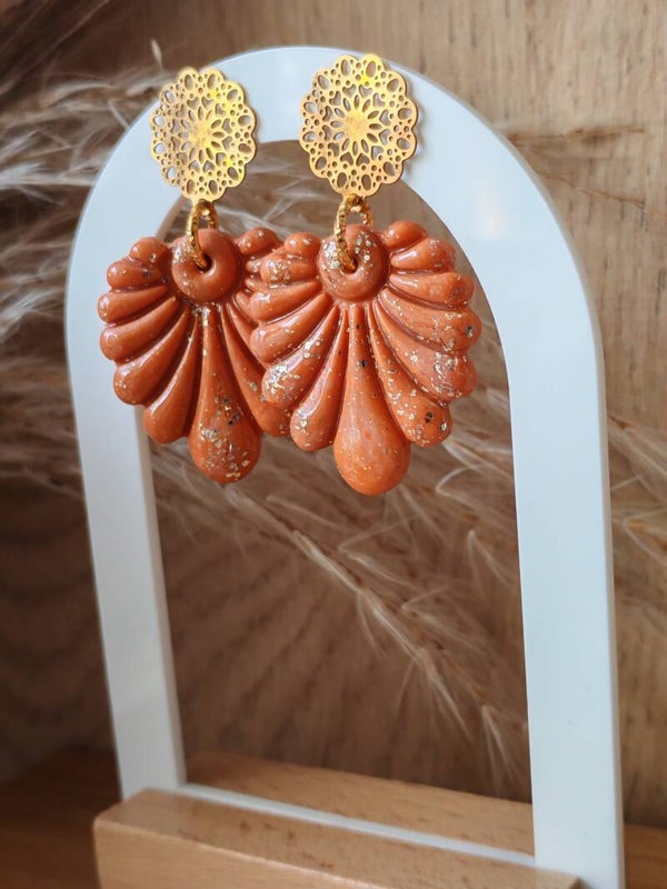 Boucles d'oreilles en acier inoxydable et pâte polymère.