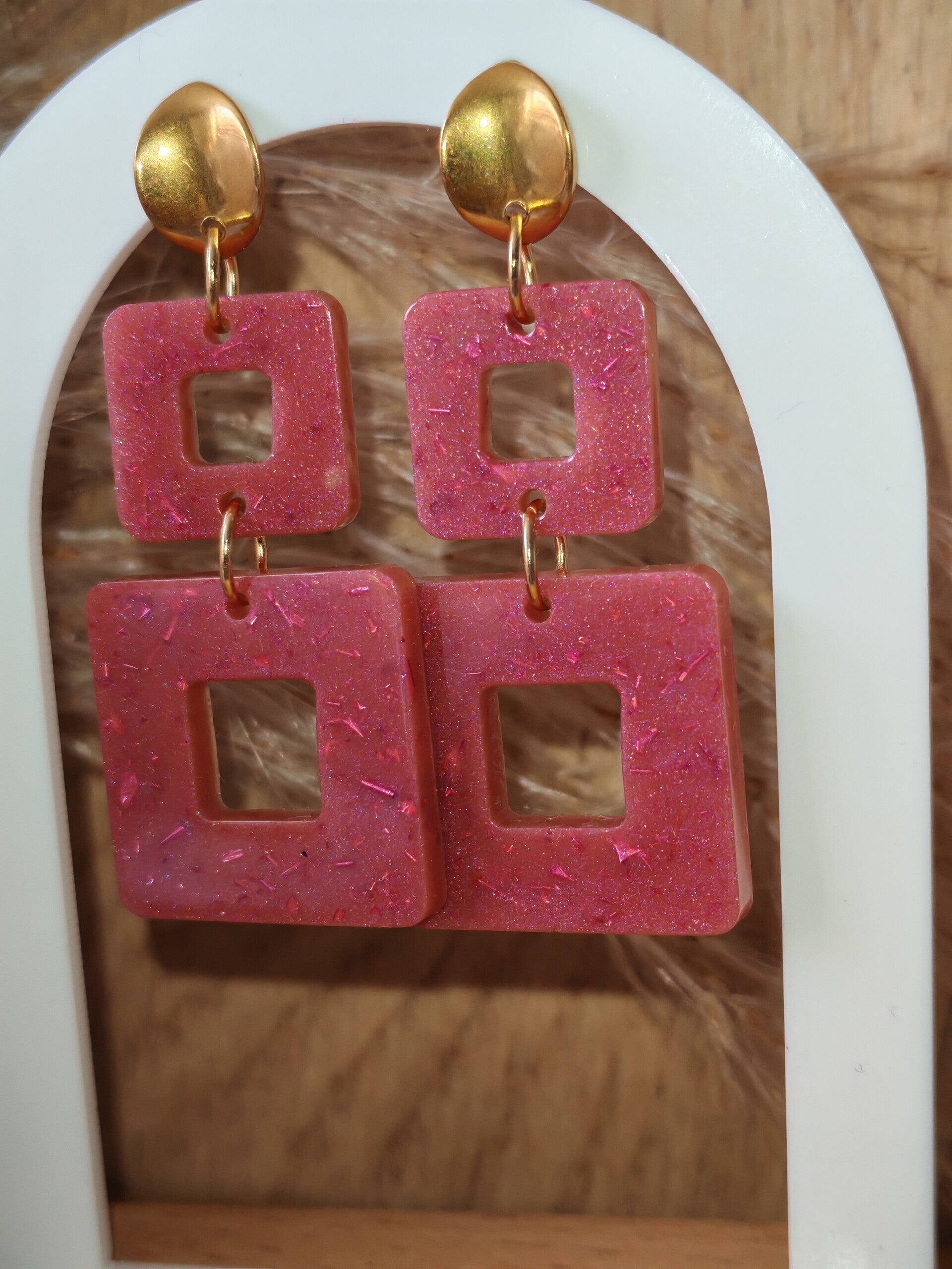 Boucles d'oreilles en acier inoxydable et résine.